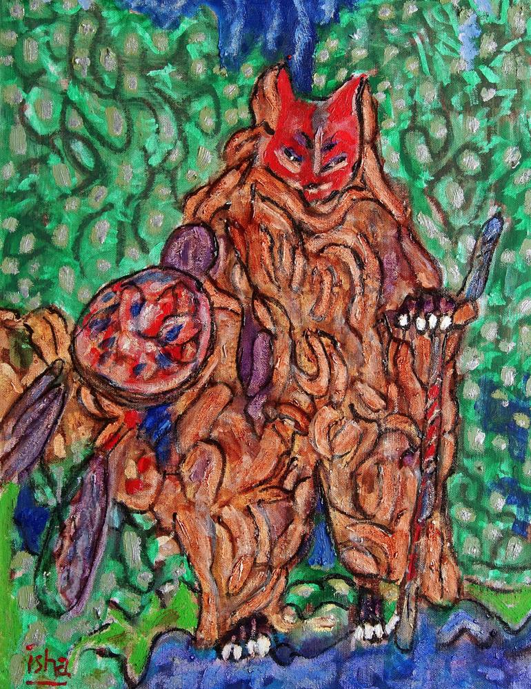 Another from my shaman series. This one is a fox in a naïve primitive style. The work ships flat un-stretched. The image size is 16 x 20 inches on 18 x 26 inch canvas. It's signed on the front and includes a Certificate of authenticity.