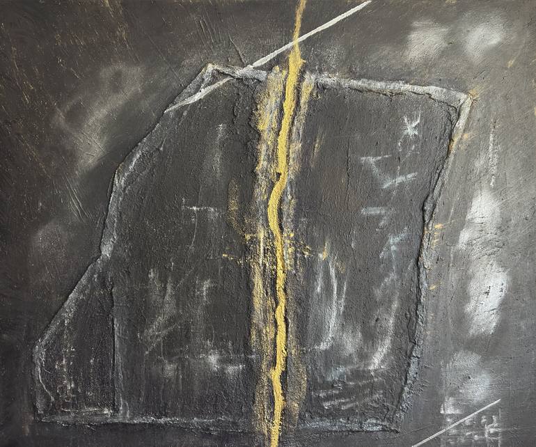 Fractured Memory captures the essence of fragmentation – a visual representation of memory, loss, and restoration. The broken shape in the center resembles a shattered stone tablet or a rupture in reality itself. The golden line serves as a bridge between the fragments, giving the piece a sacred aur...