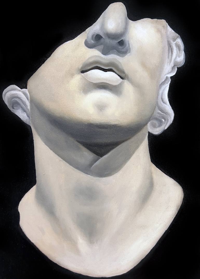 This portrait is an oil on canvas depiction of the Fragmentary Colossal Head of a Youth (2nd century BCE) Greek sculpture found in a Pergamon gymnasium and currently on exhibition at the Met Museum. While the identity of the man is unknown, there’s speculation that Alexander the Great is the subject...