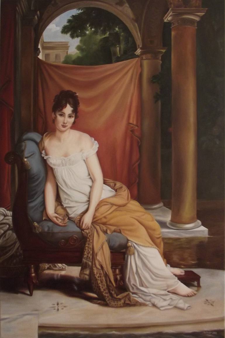 In 1800 Jacques-Louis David began his portrait of Juliette, but left it unfinished on learning François Gérard had been commissioned to paint a portrait before he had. Récamier's salon in Paris was one of the chief resorts of literary and political society in the First French Empire. I painted this...