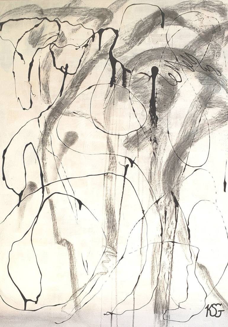 It was time to indulge in free motion of line, form and fun. Using the simplicity and boldness of black and white the piece creates wonder. This is more of an intuitive work yet layered with elements of media materials from graphite, charcoal,Tar Gel, to Acrylic. Each layer is coated with a protect...