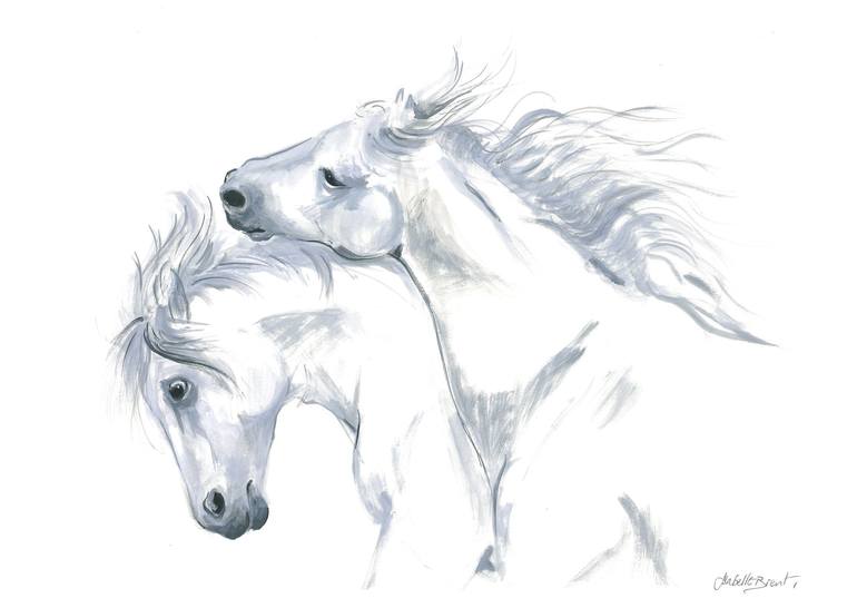 "Free Spirits" captures two horses in dynamic movement, their energy palpable through the artist's skillful dry brush technique. This method lends itself perfectly to portraying the strength and veracity of these equine subjects, highlighting every contour and muscle with expressive strokes. The art...