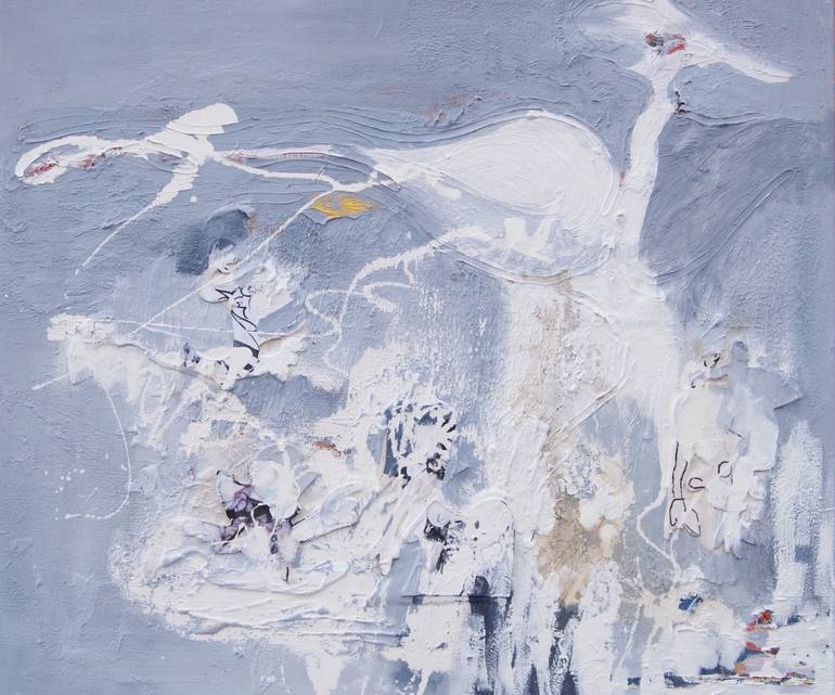 This is a collage. It meant a lot to me. To be free as a bird. It came out my subconscious mind. After it was made a real new style of a mix between painting, collage and creative search. You can get in this painting follow the paint the layers the thickness, the structure. It is incredible of the p...