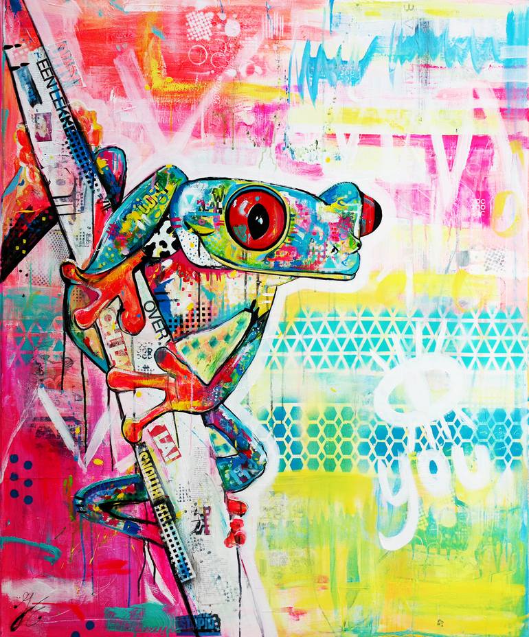 From an early age I feel a drive to create by drawing and painting. As an artist I make hip and colorful paintings inspired by graffiti, fashion, pop art, retro patterns, streetart, graphic shapes, typography and song lyrics. The colorful layering, use of acrylic paint and mixed media wallpaper features my work and my style. Enjoy my paintings!! Janet Edens