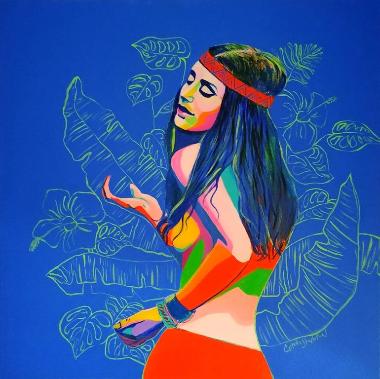 Born in Lima, Gisella Stapleton's work is inspired by her inner world, dreams and memories as well as the strength of women and the richness of Latin American culture and folklore. Using a wide range of materials, including oils, acrylics, gouache, recycled jute, and through painting and embroidery, she creates a distinctive style that fuses tradition with contemporaneity. The way I paint the human figure speaks of volumes and emotions, I don't intend to copy reality but to tell about my inner world and dreams, for that reason I often use distorted proportions and exaggerated features to convey intense feelings and portrait the inner beauty of my subject. Moving from her native Peru to Spain, Gisella began exhibiting her work starting at the University of Valladolid, followed by a series of exhibitions in Community and Cultural Centres such as Ronda Barcelona Cultural Centre. Since moving to London in 2011, she has exhibited her art at various exhibitions and festivals in London, including Battersea Art Station at Battersea Arts Centre, ECOFeminism Festival at the Art Pavilion and the Via Arts Prize finalist exhibition at the Brazilian Embassy. She has also been commissioned for murals that speak about diversity and inclusion, like the University of Roehampton's 'R' and the murals celebrating the community at Elephant and Castle, commissioned by Latin Elephant Charity. Gisella has recently been commissioned by STUDIO CANAL and VISIT LONDON the creation of a mural in Sutton Walk (Southbank) that celebrates Paddington as a multicultural icon and a symbol of the diversity in London. She has been invited to an Art in Residence at KEW GARDENS (From December to February 2025), where she has created the artworks (2 murals, 3 big paintings on canvas and 20 pots) for the Orchid Festival 2025. Gisella is currently taking part of The Big Egg Hunt where she has been invited to create a painting for this exhibition on the streets of London from the 24th of March until the 27th of April. Gisella Stapleton now lives and creates from her studio in London, England