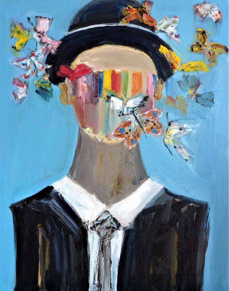 A surreal composition which shows a man surrounded by colourful butterflies. I was thinking about the idea of freedom but also how trauma and pain can often make it more difficult to remember to enjoy life and take away the lightness of simply having fun and being in the moment.