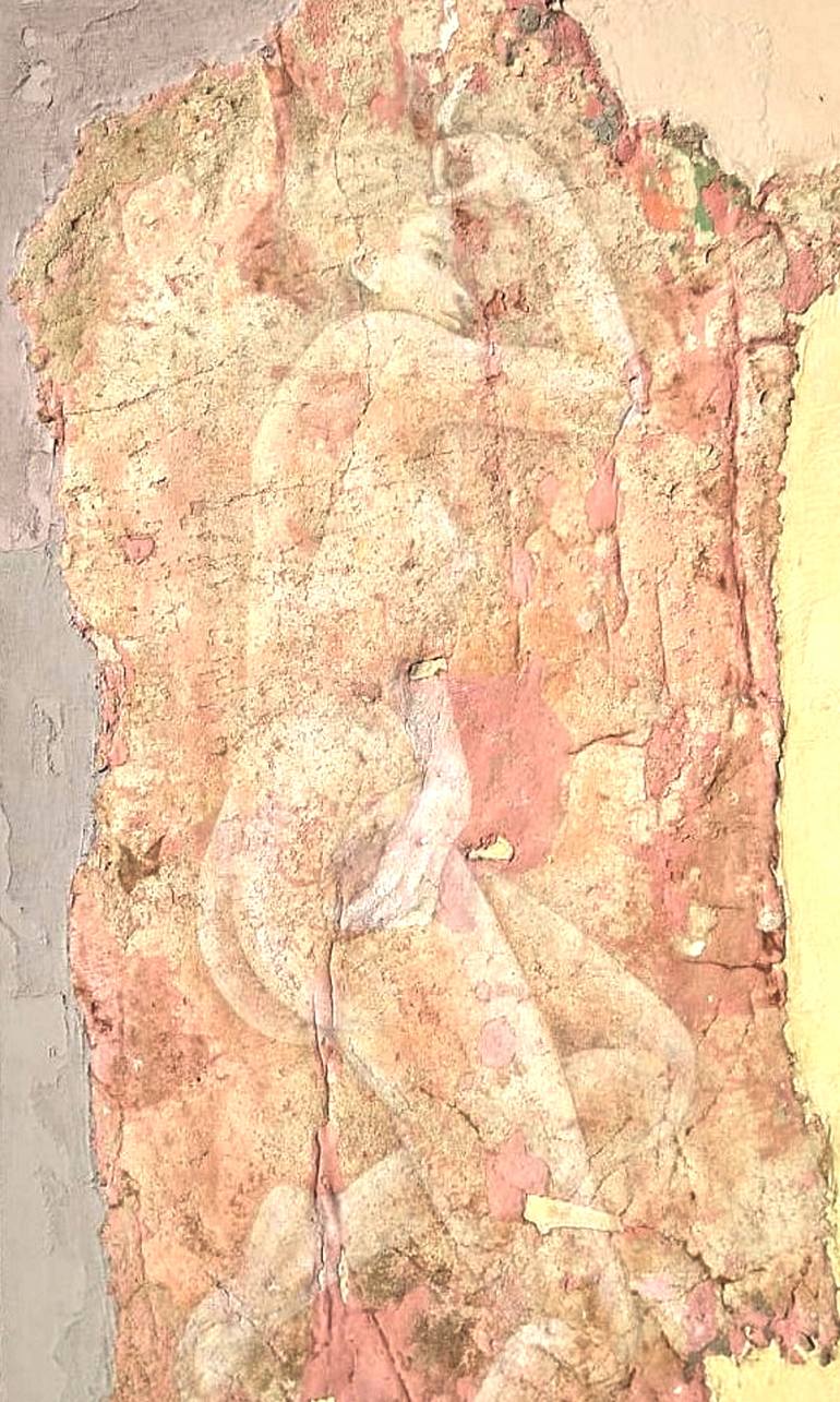 Nude woman painting in orange tones shows a woman with rounded and sensual shapes who dreams and makes us dream.