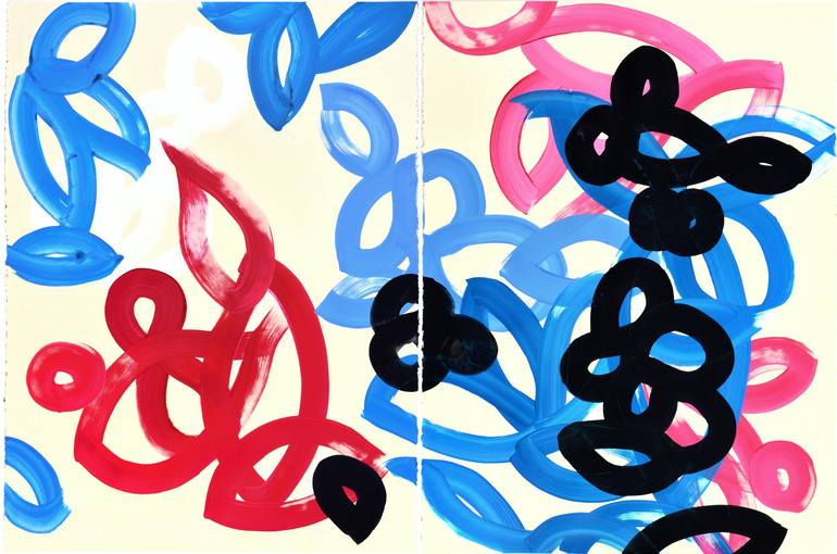 The fresh air in space brings refreshed feeling and freedom of mind. Acrylic on acid-free paper. Two individual pieces. Each one is 30 x 22 in. Ready to frame.