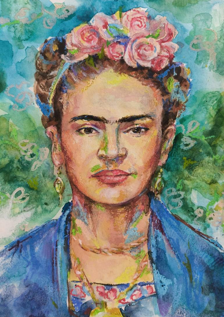 Size: 20,8 × 29,5 cm (unframed) This artwork is sold unframed. This is an original watercolor painting on 250gsm acid-free paper. The piece is signed and comes with a certificate of authenticity. It is shipped in secure, tracked packaging. This celebrity portrait of Frida Kahlo celebrates the ico...