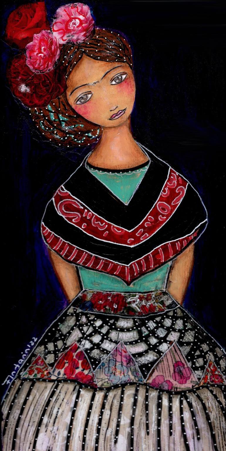 My paintings are both an exploration of beauty and a search for human connection. My art is a form of expression that draws from primitivism, naïve styles, byzantine iconography and combines different media. It has proven to be a source of happiness for me, and it has attracted many collectors. When I get messages from people explaining how the images that I paint touch them, give them strength, faith, joy… that, to me, is priceless.