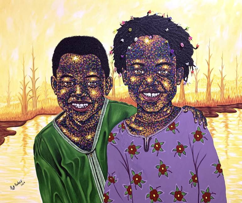 Boateng Afari Rudolf, an artist from Koforidua, Ghana, is currently in Kumasi, Ghana. From a young age, Boateng discovered his passion for drawing and painting. Boateng’s foray into the world of art started formally after his secondary school education when he enrolled in University. He studied Art Education (painting and sculpture). He is also a self-taught artist. He skillfully navigates both traditional and modern mediums, with a focus on abstract to realistic mixed with modern contemporary. His work explores themes of empathy, love, and family, creating a profound connection with viewers. His art is a means of self-expression and the appreciation of nature, which captures and narrates the untold stories of many who dwell on the other side of prosperity. His craft also seeks to draw attention to the interesting world of women, men, children, and everything that surrounds them.