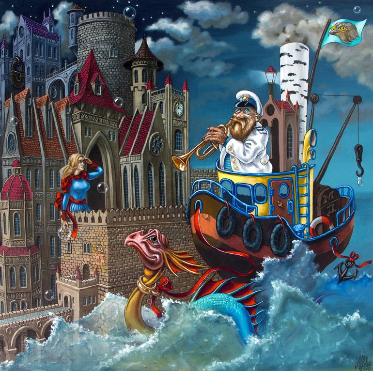 Victor Molev is a Canadian artist of Russian descent, working in the styles of Decorative Realism, Fantasy, Symbolism and Surrealism. Molev was born in the year 1955 in Gorky (present day Nizhny Novgorod), Russia. From an early age, he has shown interest in the visual arts and dedicated his time to creativity. As the artist himself jokes, his love for art derived from the fact that his grandmother was kissed by Marc Chagall in her childhood. She was his younger sister’s classmate, and often visited the Chagall household. In paintings from his childhood and early youth, Molev showed an inclination towards unconventional compositions that were free of the Soviet canons of “Socialist Realism”. In the mid-1970s, as an aspiring young artist, he took drawing and painting lessons under the apprenticeship of Moscow sculptor Tatyana Vishnyakova. It wasn’t until his early twenties that Molev became familiar with the works of Salvador Dali, Max Ernst, Rene Magritte, M.C. Escher and Frank Frazetta through books and magazines. Molev was incredibly inspired by these artists which became like mentors to him. After receiving an education in architecture, the artist worked in the field for ten years. He then worked as a set designer at the Pushkin Opera and Ballet Theatre. Both of these jobs are still reflected in the creative processes of the artist. Throughout the 1980’s, Molev was a part of many group and individual exhibitions in Houses of Culture, movie theatre foyers, research institutes, and the exhibition halls of the Association of Russian Artists. He also exhibited alongside the Gorky Union of Young Artists, of which he had been a part of since its formation. During the final years of the Soviet Union, Molev worked as a graphic illustrator for the magazine “Samizdat”. In December of 1990, Molev immigrated to Israel. The next year he became a member of the Israel Painters and Sculptors Association. He would regularly exhibit his work in galleries, exhibition halls, and community centres. The artist was constantly a part of the Nachalat Binyamin Market in Tel Aviv, as well as many other art festivals. In collaboration with the writer G.Kostovetski under the pseudonym “KOMO”, he participated in numerous international competitions of humorous drawing, which is marked by his diplomas as well as silver and bronze medals. From 2003 until 2006, the artist owned his own gallery in the city of Haifa.
