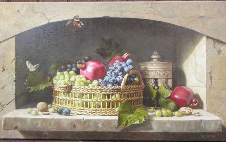 I love to paint still lifes, to convey realistic images of fruits, vegetables, beautiful dishes, glasses of wine, insects .. This, of course, was inspired by the immortal canvases of the Dutch masters of the 17th century. Therefore, in my paintings I use classical multi-layered painting.