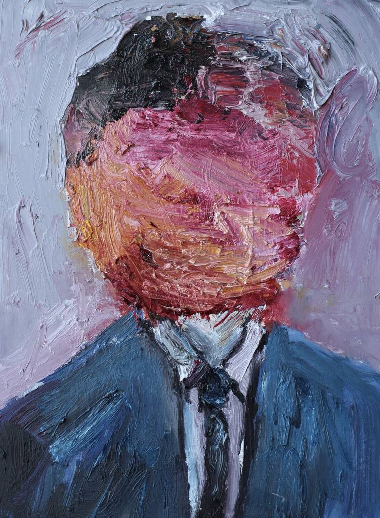 Originally, I had painted a portrait of someone on this canvas but didn't like it so I painted over the head with a palette knife.