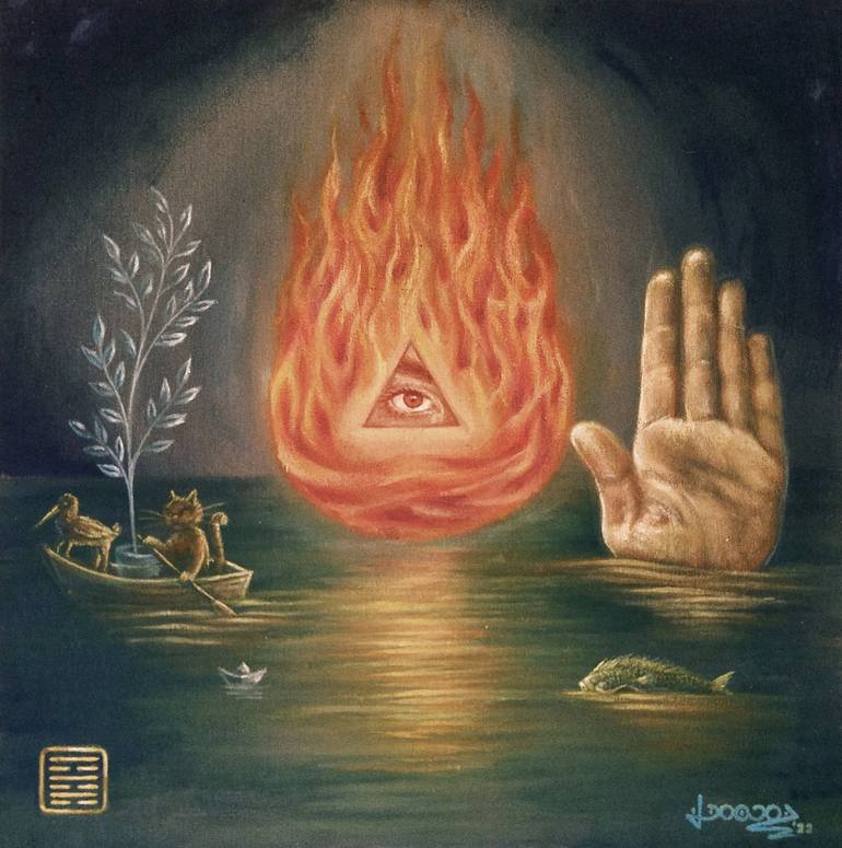 "Fuego sobre el agua. La imagen anterior a la consumación. El hombre sabio observa como es debido las cosas antes de ordenarlas. El paso del desorden al orden no se ha producido." La imagen anterior al cambio, a la transformaciòn, a lo nuevo... El fuego sobre el agua, quemar para renacer. Entender...