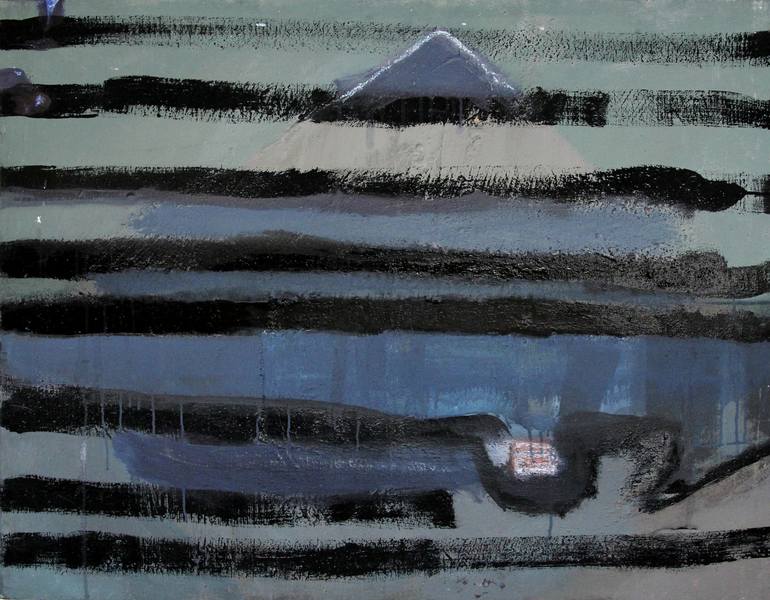 acrylic and pastel on canvas, the artwork has intended hole in canvas