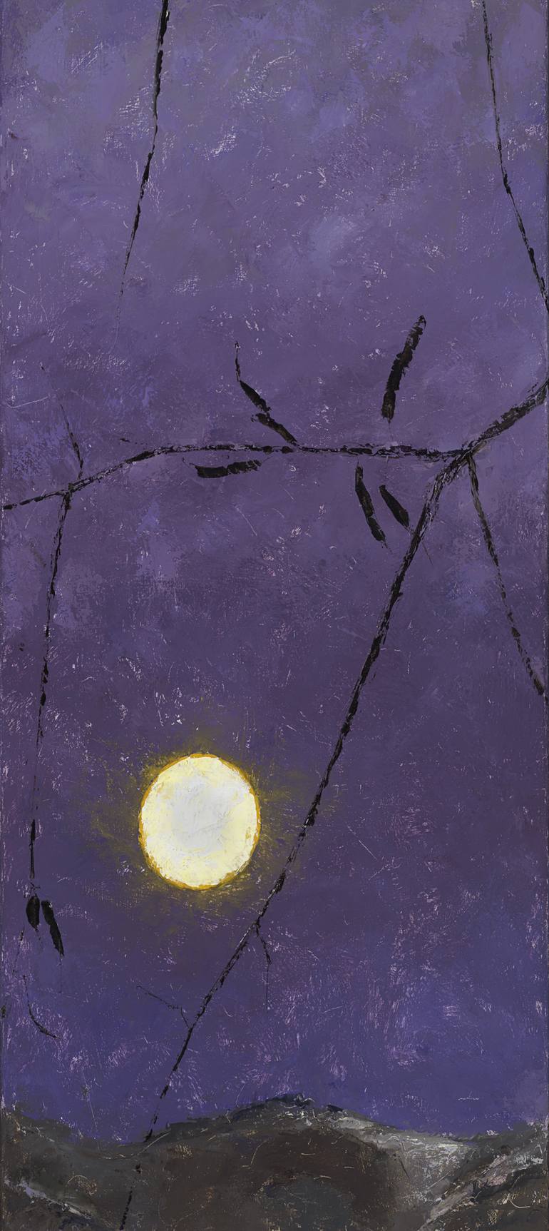 This painting of the full moon rising over a Taos mountain is one in a series of oil paintings that are meant to convey harmony and serenity. The setting is just outside my studio, where the clear New Mexico night atmosphere reveals the moon sharp and bright. In painting these pieces, it is my inte...
