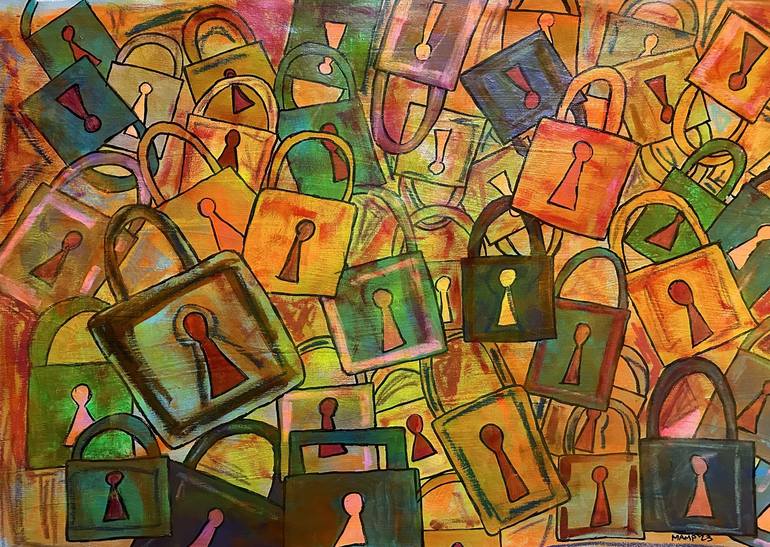 Lockers are very significant in my philosophical view. They can describe how tied we are to things in our life, how tied we are to life . Things that can be open , or that never should be opened. Material things or abstract things. Acrylic on canvas .