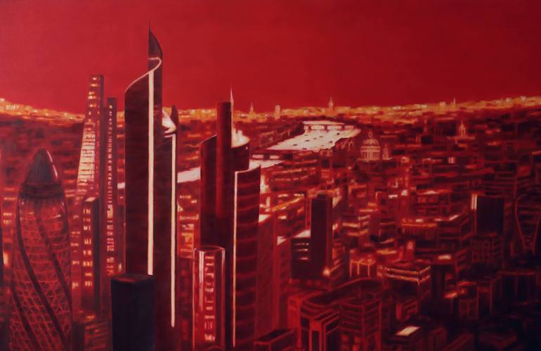 Description: 3rd piece in my new series, all about how london skyline will look like in near future, with the addition of skyscrapers such as Pinnacle, Walkie Talkie, Cheese Greater.Medium: Oil on CanvasYear Created: 2009