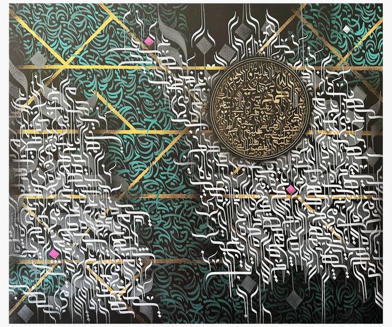 Surah Fatiha on canvas 120x100 cm Acrylic spray and markers