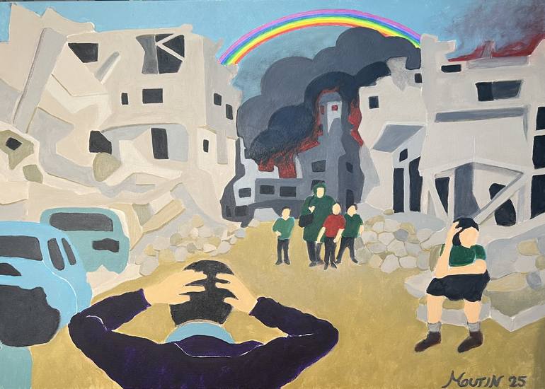 Consulting architect during 30 years, I have always drawn and painted. I first deepened my drawing experience in a Beaux Arts of Lyon workshop for 10 years and I now devote myself entirely to painting. When people ask me about my work, I usually respond in a slightly provocative way "I do the PSEUDO-FIGURATIVE Committed", which nevertheless corresponds well to part of what I seek to do. My conviction is indeed that if the painting takes shape thanks to the sensitivity of the painter, it must be underpinned, by the look he has on the society in which he lives, and the perception he has of its evolutions. . Even if it may ultimately prove to be eternal, for me it must be anchored in today's world. Beyond the emotion felt, it must be able to have a meaning for the viewer. This is why purely abstract painting, which was an important historical moment, if it aims only at formal games, colors and matter, seems to me personally today a little limited in its potential of expression and of interpellation. My paintings are therefore not abstractions. They do not aim at precise realism either. The figuration must simply be sufficient to support the meaning. They are a simplified representation and an interpretation of reality. They tell one (or more) story (s). It is in this spirit that I created the exhibition "Les Temps Modernes" at the Galerie l'œil listening in 2017, with 24 paintings on today's issues: communication, solitude, new technologies, diversity, terrorism, war, environment, ecology, family, universe, fashion, painting ... (and some re-interpretations of famous paintings revisited). I have since been greatly disturbed by Covid 19, which has been a source of inspiration for me. I share my time between Lyon and Tangier, where I find a part of my inspiration. Architecte consultant pendant 30 ans, je dessine et je peins depuis toujours. J'ai d'abord approfondi mon expérience du dessin dans un atelier des Beaux Arts de Lyon pendant 10 ans et je me consacre maintenant totalement à la peinture. Quand on m'interroge sur mon travail, j'ai l'habitude de répondre de manière un peu provocatrice "Je fais du PSEUDO-FIGURATIF Engagé", ce qui correspond quand même bien à une partie de ce que je cherche à faire. Ma conviction est en effet que si la peinture prend forme grâce à la sensibilité du peintre, elle doit être sous-tendue, par le regard qu'il porte sur la société dans laquelle il vit, et la perception qu’il a de ses évolutions.