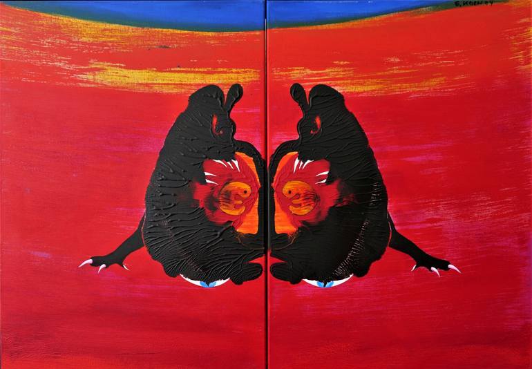 This picture was created in a special technique... As you can see, there are two canvases joined together in a fixed wooden frame. I put a color on one canvas and put it on the second one. In depth psychology, so-called folding pictures are used according to the inventor of the psychiatrist and psyc...
