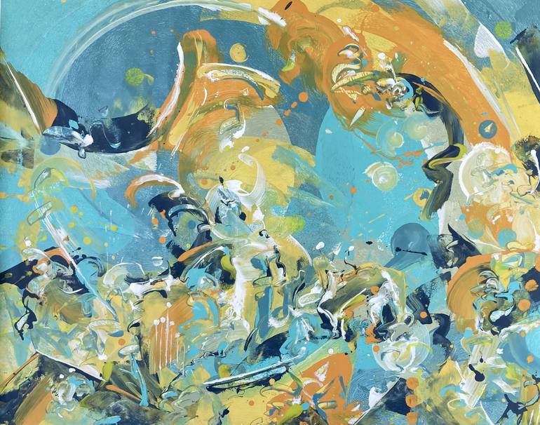 "Genesis IO 4" is a captivating abstract expressionist painting that whisks us away to IO, one of Jupiter's enigmatic moons. In a dynamic composition dominated by the main colors of turquoise, yellow, and orange, this artwork radiates a sense of joy, lightness, and musicality. The artist's expert u...