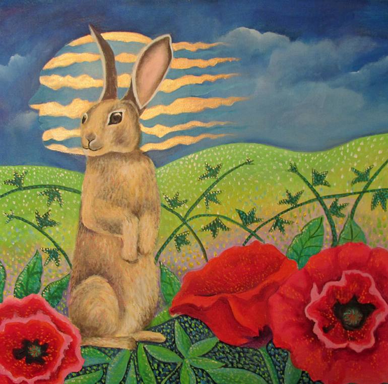 I was born the same year as Paul McCartney was in Sacramento, California. I have been interested in art from the time I first picked up a crayon. My favorite work has the irrationality of a dream. I like the complications that I make for myself and am interested in color and patterns. I am inspired by nature especially by the sky and by animals both domestic and wild. I have two tuxedo cats and they are frequently in my work as they are part of my family. I am also inspired by everyday life and by some force that comes through me that drives me to create.