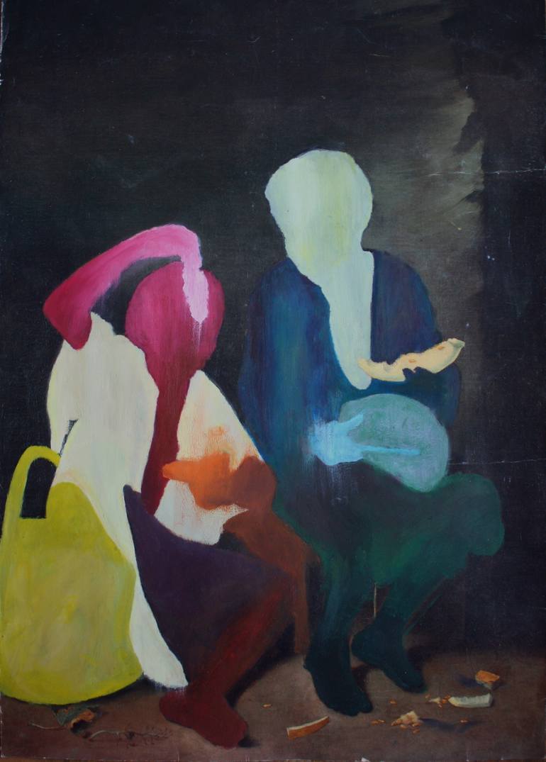 Painted with oil paints over a reproduction of a classical painting on paper. Bartolomé Esteban Murillo - Dos muchachos comiendo melón y uvas. Signed and dated on the backside. You can contact me on Instagram for additional information: