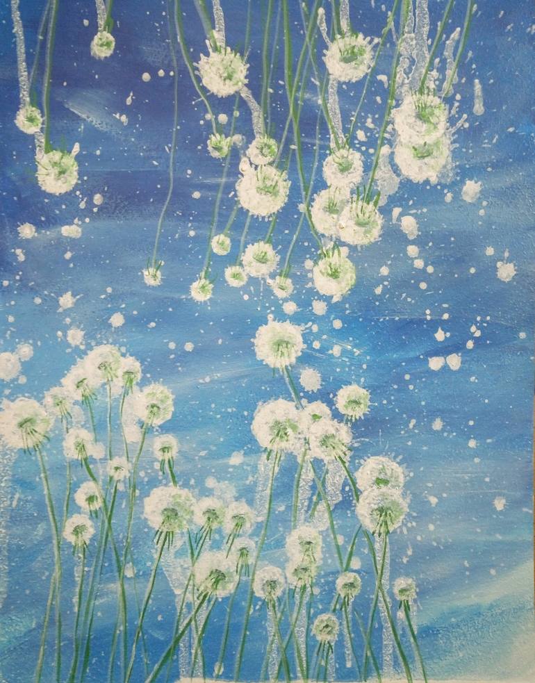 A very simple, often occurring, amazing flower that looks like the sun and one kind of uplifts the mood. When the dandelion blossoms, it becomes a white, down ball that generously giftes the earth with its parachute seeds! Acrylic on cardboard, mixed media Size: 50 * 40 * 0.3 cm ...