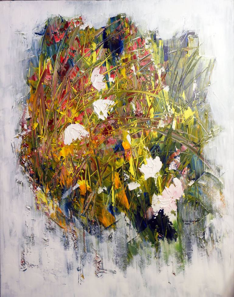 • This is one of my "PAINTINGS OF AN IDEAL WORLD" and what I want to tell you about it is the following: • "Trapped in a city whose green spaces are increasingly concreted over, I paint memories. Memories of days, where one lies belly-down on sun-hot ground, observing grasses and blossoms from ver...