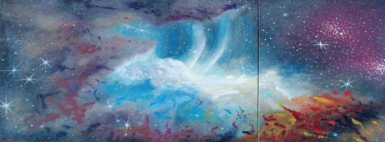 Questo dipinto rappresenta quello che potrebbe essere per me l'universo in un preciso momento ed in preciso luogo. È affascinante l'idea di poter dipingere un soggetto che cambia continuamente aspetto e dimensione fermandolo per sempre attraverso una rappresentazione artistica.I colori sono quelli a...