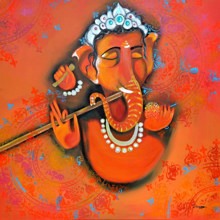 TITLE - Ganesha " Son of Lord Shiva, Bestowed of Treasures & Riches Remover of all difficulties & obstacles.....May Lord Ganesha in all His incarnations showers His finest blessings on you! " SIZE - 36 x 36 x 2 IN INCHES - ORIGINAL ACRYLIC PAINTING on gallery wrapped canvas. - HIGH QUALITY Ar...