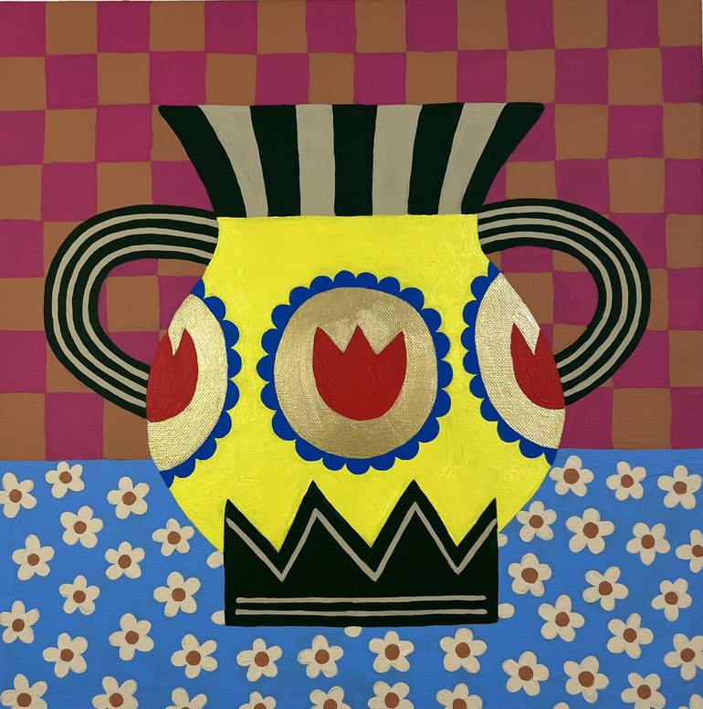 This work is inspired by the timeless beauty of folk art and the vibrant energy of nature. The vase, adorned with tulip motifs and surrounded by bold geometric patterns, symbolizes the harmony between tradition and modernity. The naive style was chosen to evoke a sense of simplicity and warmth, remi...