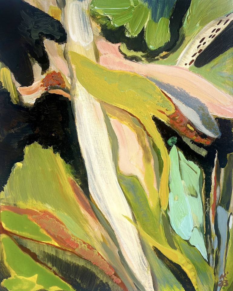 This acrylic painting on canvas titled "Garden" captures the vibrant beauty of Madeira's flora through an abstract lens. The canvas measures 40x50 cm, making it a medium-sized piece that can easily fit into various spaces. The painting features a vertical (portrait) orientation, enhancing its heigh...