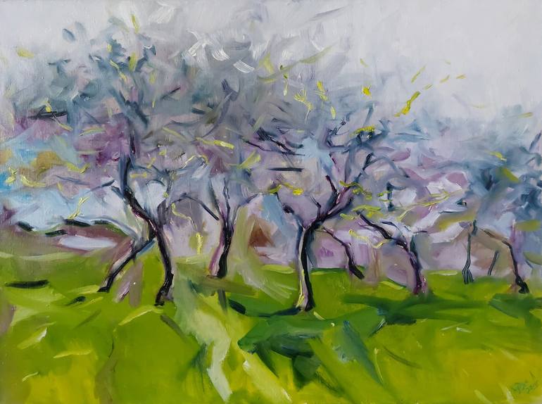 This work was painted in the open air in the Carpathian Mountains in the village of Dzembronya. Freshness, coolness, hope, spring, flowering - this is the main mood of the work.