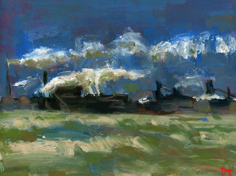 Gary, Indiana is part of a series depicting labor themes. As in most of my paintings, I use subdued colors and loose brush strokes in order to create the mood and feel of spontaneity. Art buyers may see a symbolic reference to prominent 20th century American painters like George Bellows, John Slo...