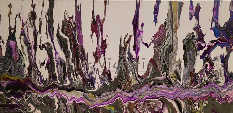 I was born and raised in Chile. During my early years, I had a difficult time learning in school. I was bullied as a child. These traumatic events greatly affected my self-esteem and I thought that I wasn't good. When I was in school I was afraid to share my opinions because I thought that everyone would laugh and call me names. As the years have gone by I realize that we are all imperfect. If we want to be happy and successful in this life, we have to forgive the people that have hurt us. Once my children had grown up, I was able to take my father into our home and take care of him. He was blind and had dementia. Everyday he got worse as he got older. I remembered a moment from my school years in Chile that I had forgotten completely. When I was about 6 years old, one of the teachers told my mother that I had a talent for art. I decided to try painting to help take my mind off the trouble I was having with my father and his dementia. It was a great decision because I found that I could describe all of my feelings and emotions with my art. I have never taken any art lessons, this was something that I decided to do on a whim. I am so glad that God gave me this talent and it makes me so happy to create original art. I am thankful for my husband and family. They have supported me so much throughout this journey. If we treat everyone with love, patience, and respect, especially little children, we will be able to change the world and start to make a difference in the lives of those around us. Life is easy, but we make it difficult when we do not forgive and forget. I try to release my feelings and emotions into my paintings so that I can forget everything that is happening around me. I hope that you enjoy my creations and feel the intense burning in my soul when I made them. Years ago when I started painting it made me lose a lot of sleep as when I closed my eyes I saw faces and visions from the past. My third month of painting I went shopping and I forgot the hour, month, day and year as I had went completely inside my paintings. I was making 11 pieces of art every day and I could not stop. I felt like I was a printer. It was a crazy and happy time. I became close to the Spirit of God and made some gravity paintings. I discovered different techniques that were very miraculous and magical. When I was painting one of the paintings I wanted to put some grass in the painting, I turned around the grass appeared magically.