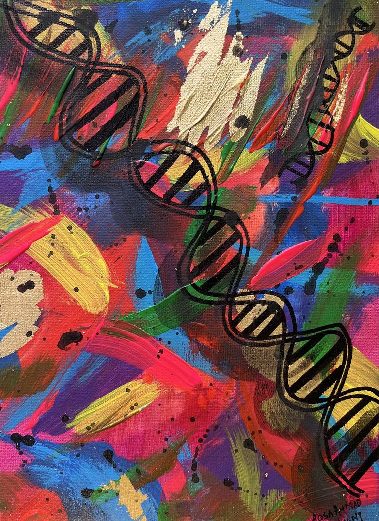 The double helix structure represents the model of this universe, the relation of every living being on abstract. This is an original composition painting handmade by a well known artist from Pakistan Aqsa Ahmad Raja. We can look beyond the physical appearance of reality through this painting. A cer...