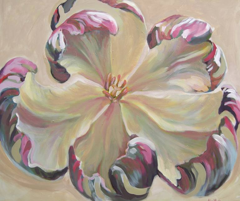Pale white tuöip opening up and allowing you to peek in to her secret parts of the heart