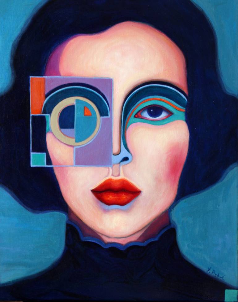 The portrait of a woman is simplified in form and breaks with the classic narrative, combining elements of surrealism with geometry. Its basis is a soft line and a stain that organizes the space. The painting is a pretext for the confrontation of lines and color with static planes. The painting is c...