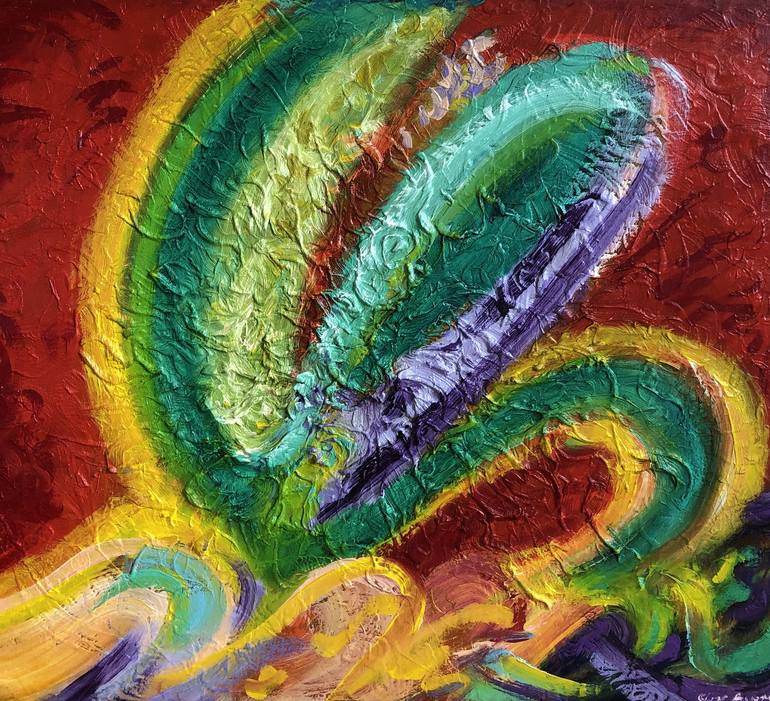 I love reading about astronomy and space exploration, and learning about the technology required to search and travel beyond our planet. These ideas often impregnate my paintings. The Germinating Jupiter series is based on a fern-like curlicue form imposed on thickly applied impasto layers of oil co...