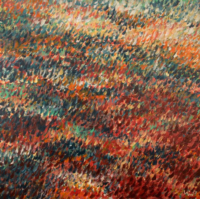 The Vibratory Series was the starting point for the Germination series, of which this painting was the first using colours that reminded me of autumn leaves. I thought I would start off with something small on a 1 x 1 meter canvas.