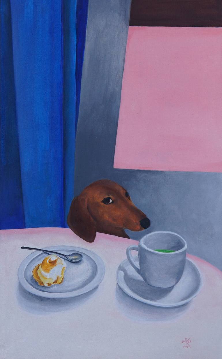Always keep an eye on your dessert. Dashchunds are sneaky, fun and very human alike potatoes. They are picky as well, so matcha latte is not a coincidence. Enjoy it ☺️