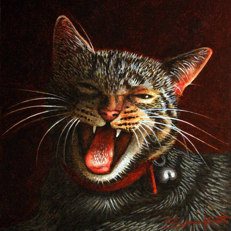 Gigi Growl in oils. My pet cat is a a bit wild and I think it is because she is a Wild Bengal mix cat. And in my oil painting of her you can Gigi showing her sharp teeth, as if to say "Don't mess with me ! " =^.^=