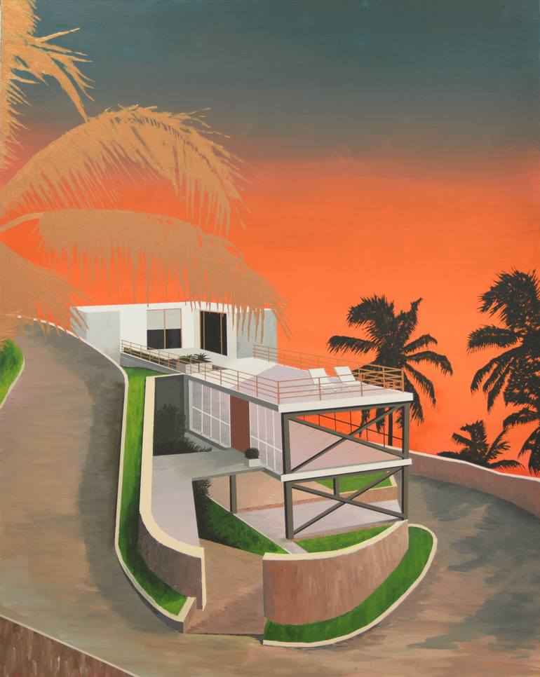This painting is part of a series of beach homes and palms that I am creating over the course of a year. I am inspired by the balance and symmetry of modern architectural design. I hold such constructions to be near the pinnacle of human artistic achievement. I focused on my own serenity as I create...
