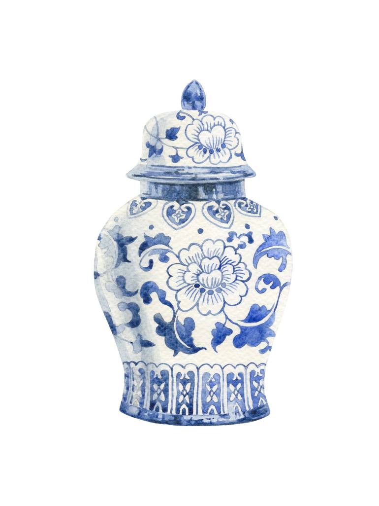 - This is an original signed hand-painted watercolor painting of a blue chinese porcelain jar. - Painted on cold pressed 300gsm acid-free watercolor paper using professional grade watercolor paints. - The painting area is 6"x8" and mounted on a white mat board to fit any 8"x10" photo frame of your c...
