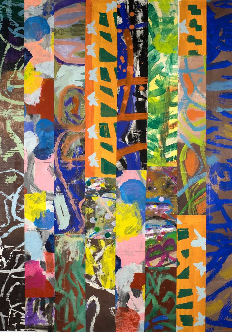 Colored Stripes - I often use the method of art recycling in my works. In this series, I let horizontal or vertical strips of paper come together as if by chance. This results in pieces with a new color and form rhythm, new perspectives, and spaces. Space is created for a different and creative appr...