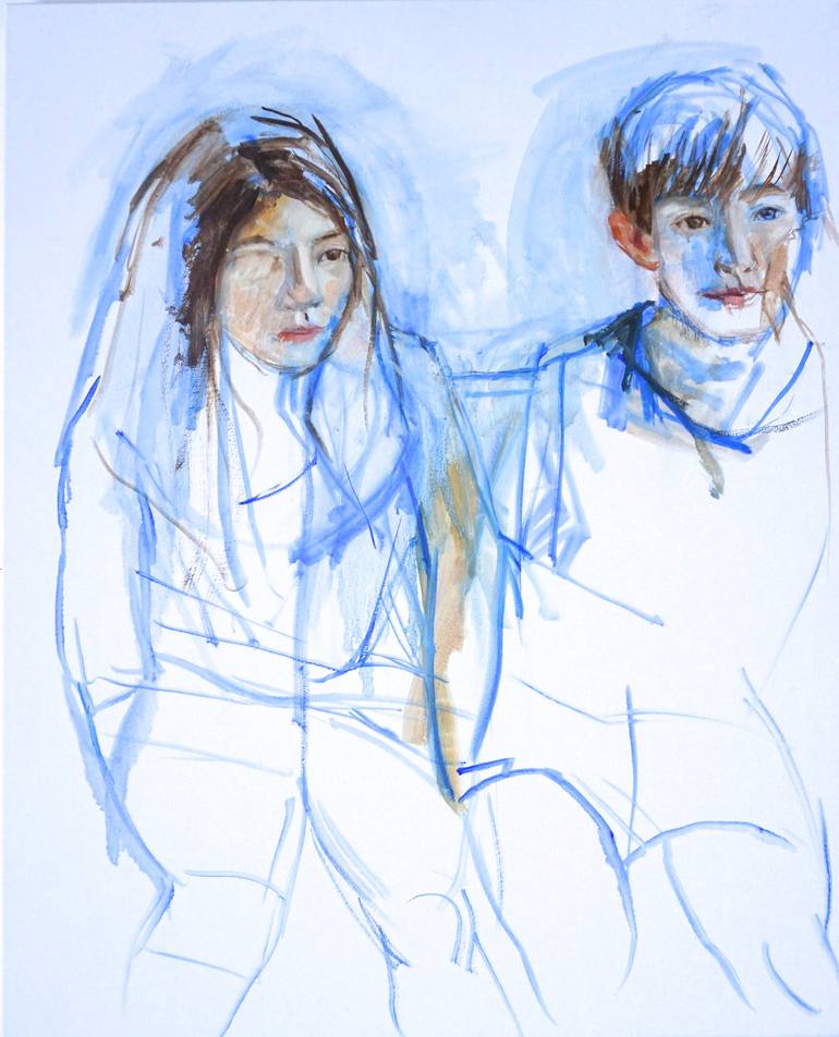 This is a double portrait of my son and daughter from observation. They agreed to pose for me in my studio if they could watch the iPad, which they did. I began with a blue outline and then worked the color very quickly with thin washes, primarily in their faces. I was trying to capture their expres...