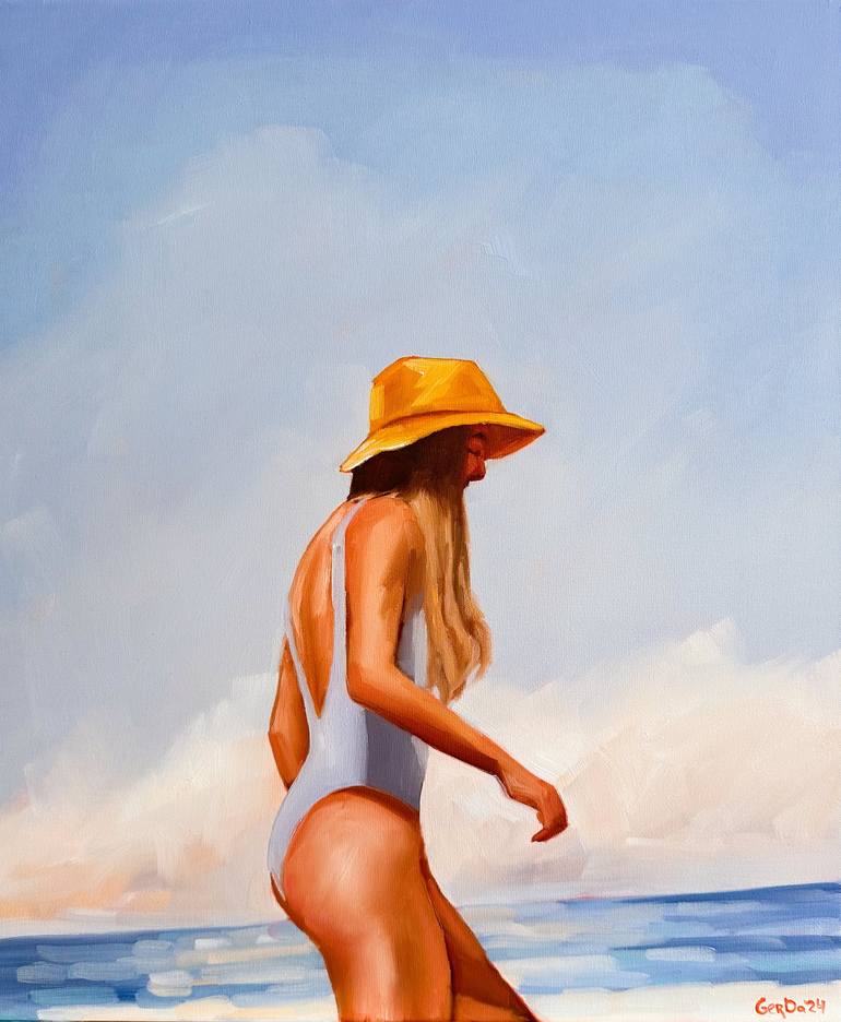 My name is Daria Gerasimova (GerDa) and I work in such artistic styles as realism and modern impressionism, (all in oil painting). I create a coastal painting depicting a human figure. They are mostly women. I like to draw warm summer landscapes, which depict happy and free from difficult life people. My artworks are a reminder of the simple pleasures of life, such as spending time at the beach, enjoying the sunshine, and listening to the waves crash on the shore. I work with large semi-abstract brushstrokes in the alla prima technique. It helps me to convey the feeling of movement.